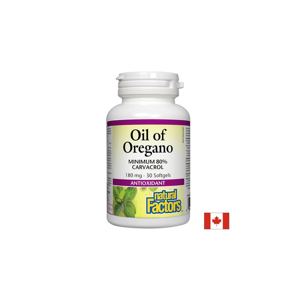 Органично масло от риган на Natural Factors в лесна за прием софгел капсула. Използваният риган е ръчно набран и разтворен в точно съотношение със студено пресован зехтин- за оптимална абсорбция на продукта. Проучванията сочат, че маслото от риган подпомага тялото срещу микроби, бактерии, дрожди, гъбички и паразити.