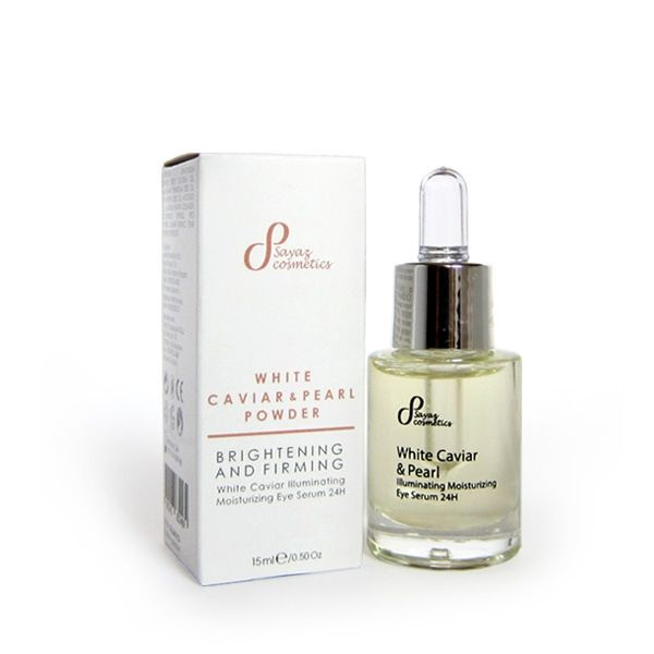 Озаряваща и стягаща 24 часова формула за около очен контур с екстракт от бял хайвер и перлен прах. Интензивно хидратиращ и бързо проникващ, лек серум, който успокоява, тонизира и избистря кожата в околоочния контур. Спомага намаляването на подпухналите зони и тъмните петна около очите. Нанесте на почистена и суха кожа около очите сутрин и вечер. Идеален серум за под ежедневния около очен крем. Натурален продукт. INCI: SIMMONDSIA CHINENSIS SEED (JOJOBA) OIL, MAKADAMIA TERNIFOLIA SEED OIL, VITIS VINIFERA SEED OIL, AVOCADO OIL, ALANTOIN, ELASTIN, COLLAGEN, TOCOPHEROL, RETINOL, RICE PROTEIN, CAVIAR EXTRACT, PEARL POWDER, PROPOLYS