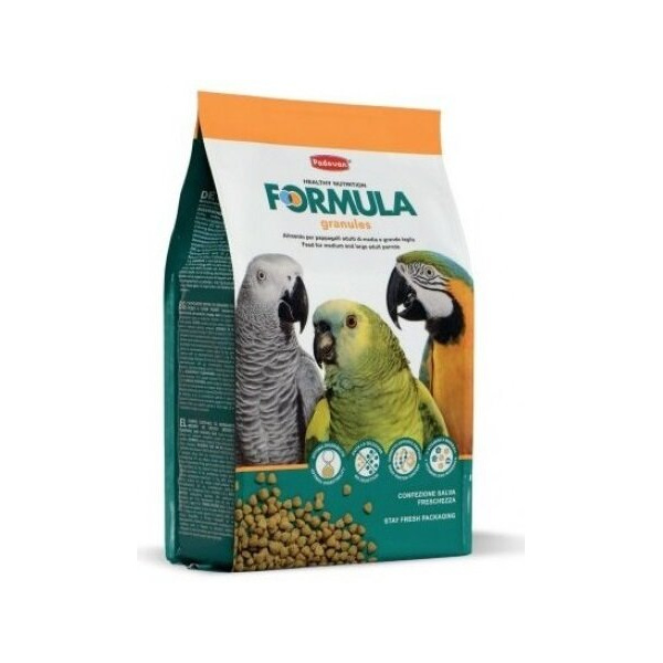 Екструдирана (гранулирана) храна за възрастни папагали със среден голям размер.