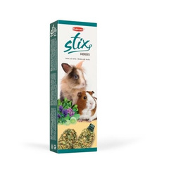 Допълваща храна за мини зайци, морски свинчета и чинчили. Ронливи пръчки, изпечени във фурната, със спанак и люцерна, покрити с праз, за да се дадат като допълнение към нормалната диета на животните. Състав: зърнени храни,зеленчуци (праз 2%, спанак 1%),странични продукти от растителен произход (люцерна 1%),плодове,захари и минерални вещества.
