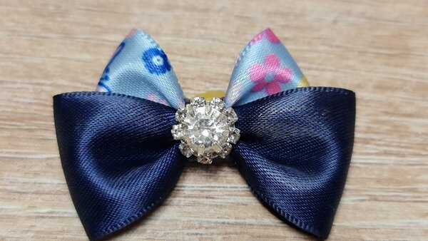 Ръчно изработена панделка за куче. Захващането е със здрав двоен груминг ластик. Колосана. Размери:5 х 4см.