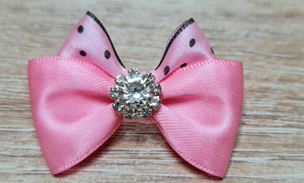Ръчно изработена панделка за куче. Захващането е със здрав двоен груминг ластик. Колосана. Размери:5 х 4см.