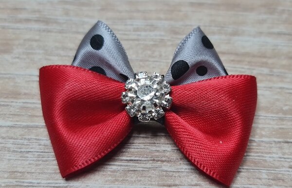 Ръчно изработена панделка за куче. Захващането е със здрав двоен груминг ластик. Колосана. Размери:5 х 4см.