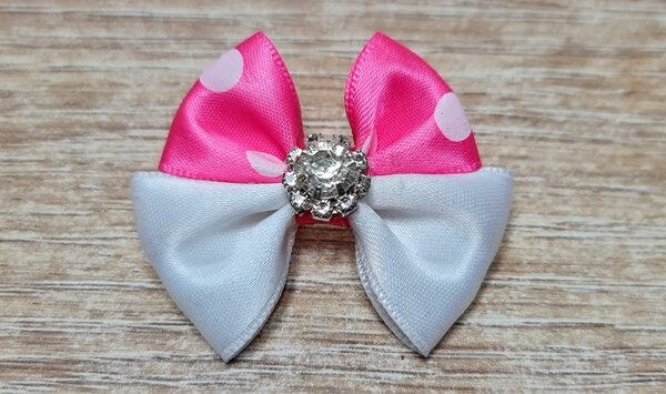Ръчно изработена панделка за куче. Захващането е със здрав двоен груминг ластик. Колосана. Размери:5 х 4см.