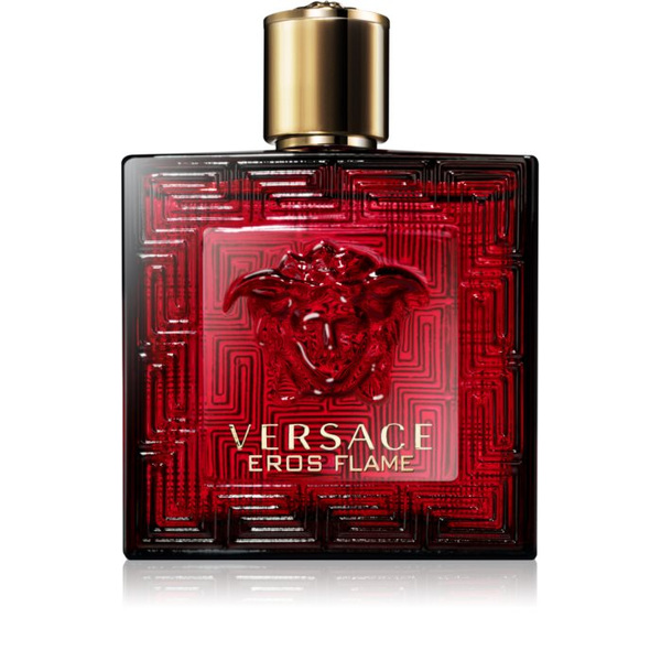 Композицията на аромата Versace Eros Flame се характеризира със силни контрасти. Връхните нотки принадлежат на силно темпераментното ухание на сочни италиански плодове като лимон, мандарина или горчив портокал. Следват сгряващи акорди на мадагаскарски черен пипер и ароматен розмарин, допълнени от гераниум, роза и пиперено дърво. В базовите нотки на парфюмната вода доминира редкият тексаски кедър или хаитянски ветивер, но съдържат също дъбов мъх, пачули, сандалово дърво и бобова тонка, които перфектно се съчетават със сладката ванилия.
