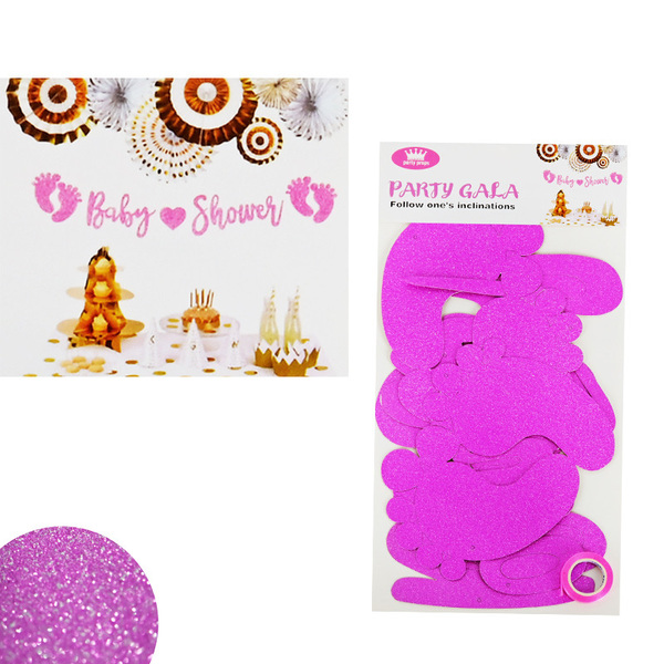 Парти надпис BABY SHOWERВ брокатено розов цвят.Размер на крачетата - 18 см. х 18 см.Дължина на надписа - 4,5 метра