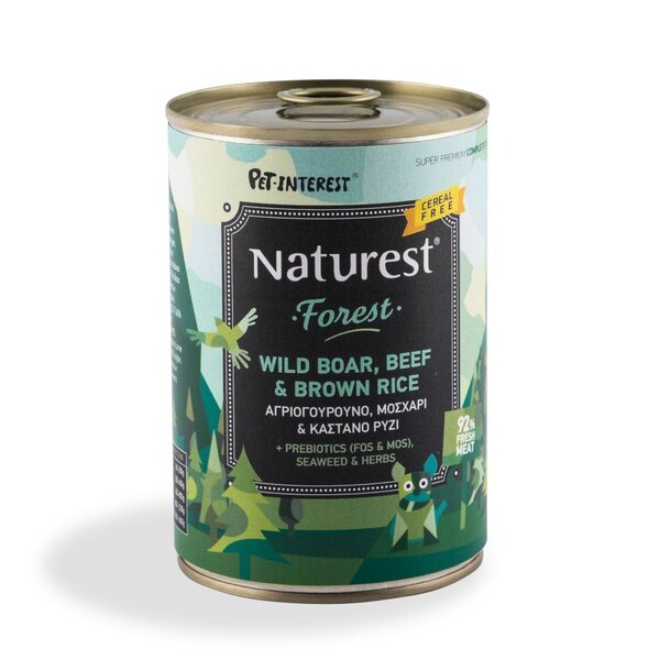 Консерва за куче – NATUREST, Див глиган и говеждо месо с кафяв ориз.
