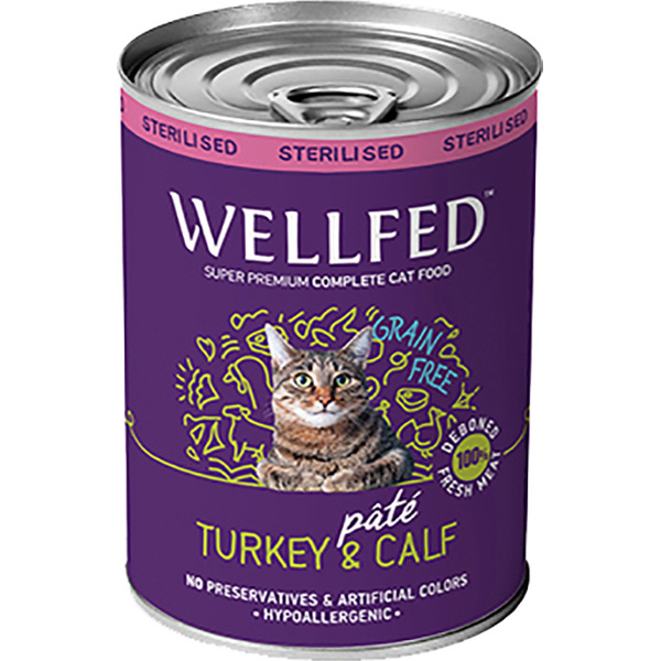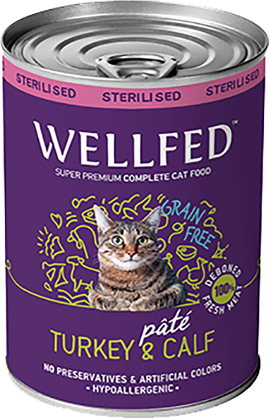 Консерва за котка – Wellfed Пълноценна храна за стерилизирани възрастни котки – пуйка и телешко (12месеца – 7 години).