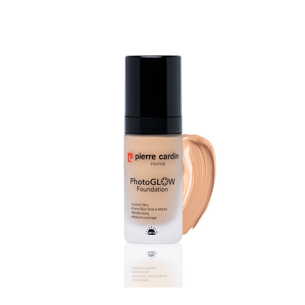 Pierre Cardin Photoglow е фон дьо тен, който помага за премахване на дефекти по кожата и тонизира неравенството със специалната си формула и средно покритие. Той изравнява тоновете и белезите на кожата и дава ежедневна хидратация.
