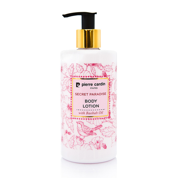 \n\nПредупреждения: Само за външна употреба. Избягвайте контакт с очите. Дръжте далеч от деца. Съхранявайте при стайна температураЛосион за тяло Pierre Cardin Secret Paradise, обогатен с масло от баобаб, омекотява кожата ви. Неговата богата формула се основава на глицерин и витамин Е, които оставят кожата дълбоко подхранена и хидратирана. Лосионът се абсорбира лесно и придава на кожата прекрасен тропически аромат, който ви отвежда в рая.
