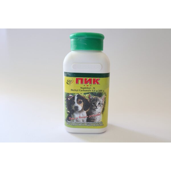 Активни вещества:Naphtyl-N-Methyl Carbamate 5.2 g/100 gВидове животни, за които е предназначен:Кучета и котки.Терапевтични показания: