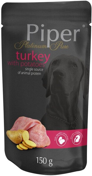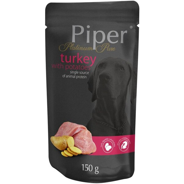 ова прави Piper Platinum Pure пуешко + картофи идеална храна за всекидневно хранене на кучета за поддържане на козината във върхова кондиция.