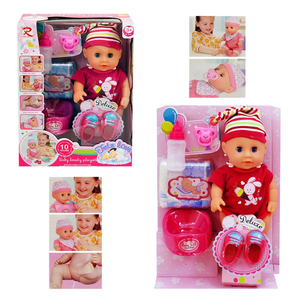 Пишкащо бебе с гърне, памперс и аксесоари /с машинка/.