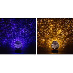<p>За да получите ясно и контрастно изображение, трябва да започнете проекцията при изключено осветление и плътно затворени завеси. Поставете Levenhuk Discovery Star Sky P5 върху равна повърхност на 1,5–2 метра от тавана или от стена със светъл цвят. Проекцията на Космоса се управлява много лесно: натиснете бутона върху основата на астропланетариума, за да стартирате процеса, или го задръжте натиснат няколко секунди, за да превключите цвета на светлината на проекцията.</p>