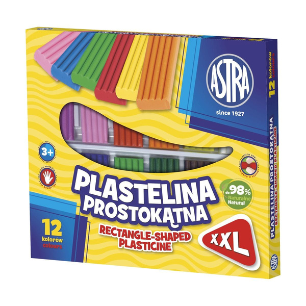 Комплект пластилин, Astra, Правоъгълен, 12 цвята