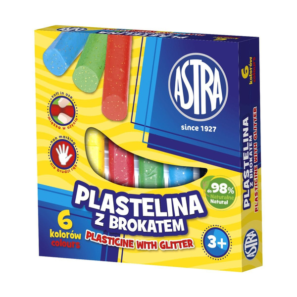 Комлпект пластилин, Astra, 6 цвята с блясък