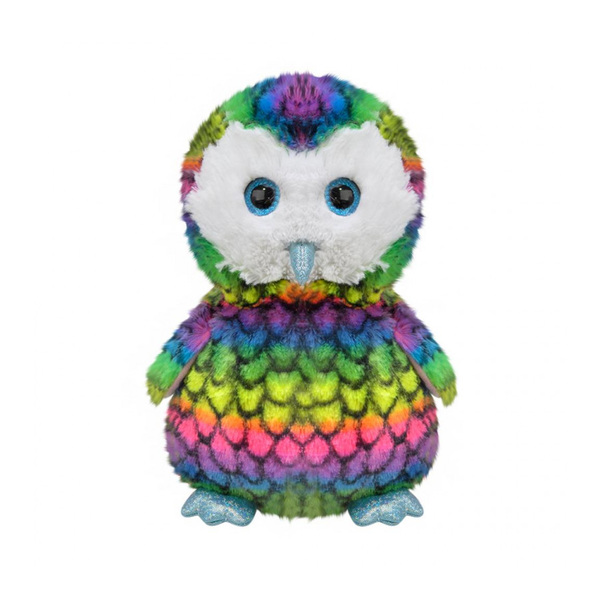 Плюшен бухал цветен от Tea Toys e със сини и красиви очи.