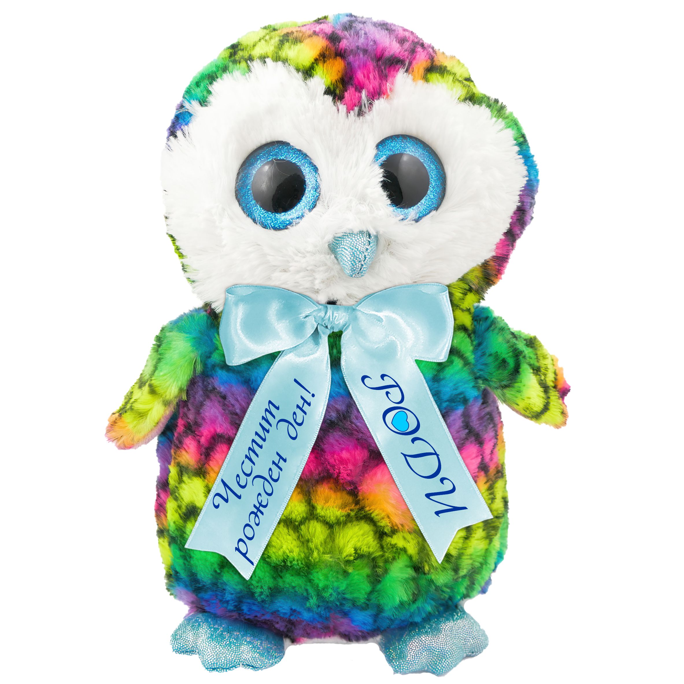 Плюшен бухал със сини очи и надписана панделка от Tea Toys.