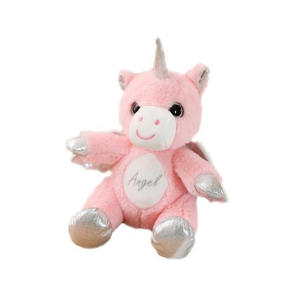 Плюшен еднорог Аглея е изящен, красив и нежен.Има сребрист рок, цветна грива и красив надпис Angel.Прекрасен подарък за малки госпожици.Размер: 30 смСъстав: текстил, пълнеж и багрила безвредни за здравето, 100% полиестер.Отговаря на европейския стандарт за качество EN71.