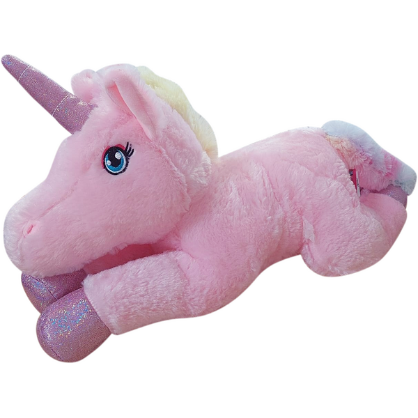 Плюшен еднорог с блестящ рог е много мек и подходящ за гушкане и игра.