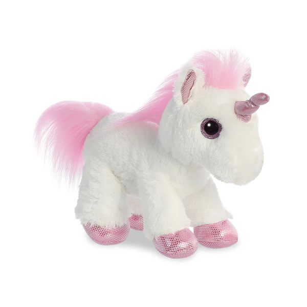 Плюшена играчка Аврора - Бял еднорог с розов рог и грива, 25 см