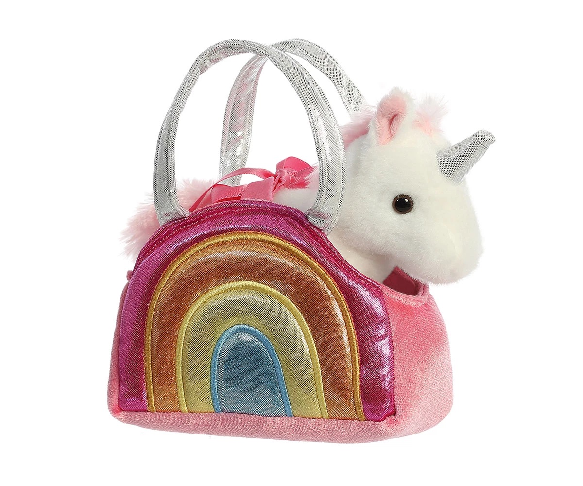 Плюшен еднорог в чантичка е оригинален подарък за малките госпожици, любителки на митичните същества.