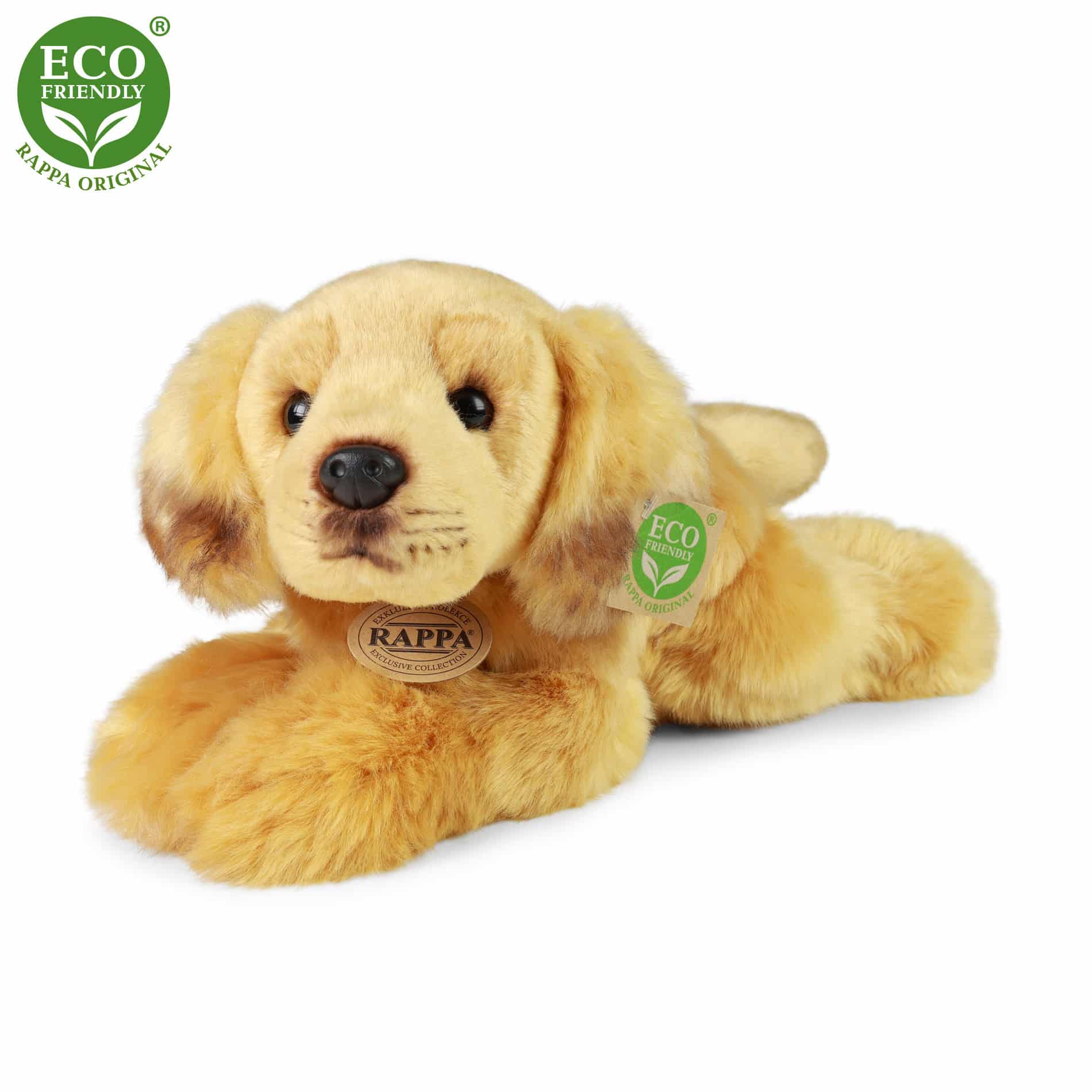 Очарователното плюшено куче ретривър не трябва да липсва в нито една детска стая! Кучето е ръчно ушито и изработено от изключителен, висококачествен плюш, дължината му е прибл. 30 см. Това сензационно плюшено сладурче е идеално и за подарък. Какво всъщност означава ЕКОЛОГИЧЕН? Пълнежът на плюшената играчка е от рециклирани PET бутилки. Този материал е напълно безопасен, неразличим на допир от стандартния пълнеж и напълно сертифициран за безопасност и на най-малките. Решихме да тръгнем по зеления път с най-малко натоварване на околната среда – ЕКОЛОГИЧНИЯ път.
