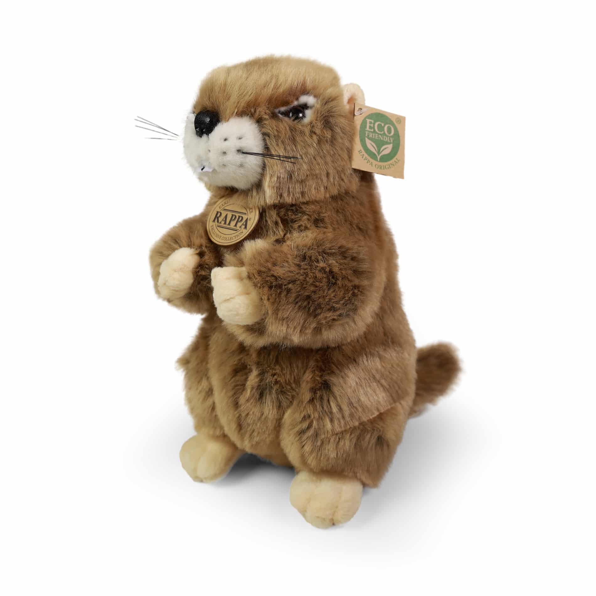 Симпатичният плюшен Мармот с размер 23 см е изработен от висококачествен плюш и затова е част от ексклузивната колекция плюшени играчки RAPPA. Какво всъщност означава ЕКОЛОГИЧЕН? Пълнежът на плюшената играчка е от рециклирани PET бутилки. Този материал е напълно безопасен, неразличим на допир от стандартния пълнеж и напълно сертифициран за безопасност и на най-малките. Решихме да тръгнем по зеления път с най-малко натоварване на околната среда – ЕКОЛОГИЧНИЯ път.