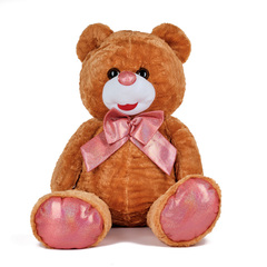 Плюшен мечок мега гигант в кафяво с червена панделка.
