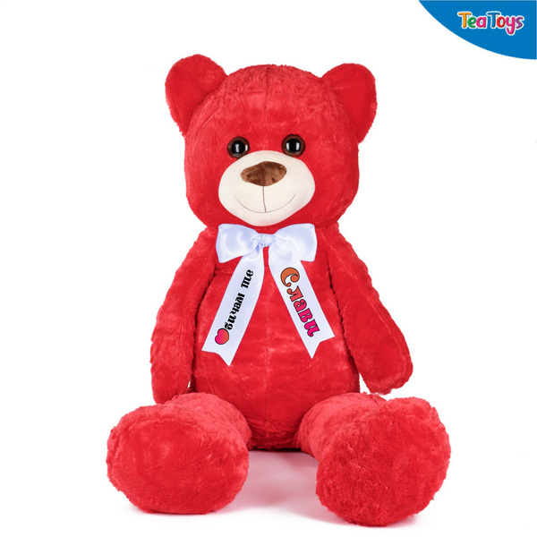 Плюшено мече в червено с надписана панделка ще ви очарова!