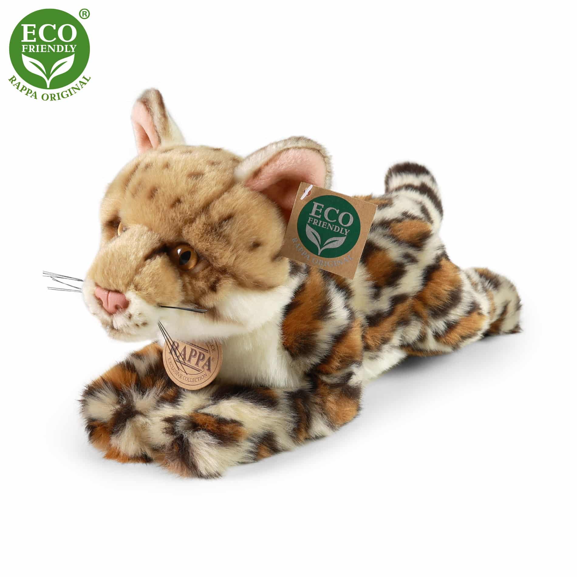 25 см плюшен оцелот е ръчно ушит от висококачествен, мек плюш, което го прави да изглежда реалистично. Благодарение на сладкото си изражение, той става желан спътник по всяко време. Част е от ексклузивната колекция плюшени играчки RAPPA. Какво всъщност означава ЕКОЛОГИЧЕН? Пълнежът на плюшената играчка е от рециклирани PET бутилки. Този материал е напълно безопасен, неразличим на допир от стандартния пълнеж и напълно сертифициран за безопасност и на най-малките.