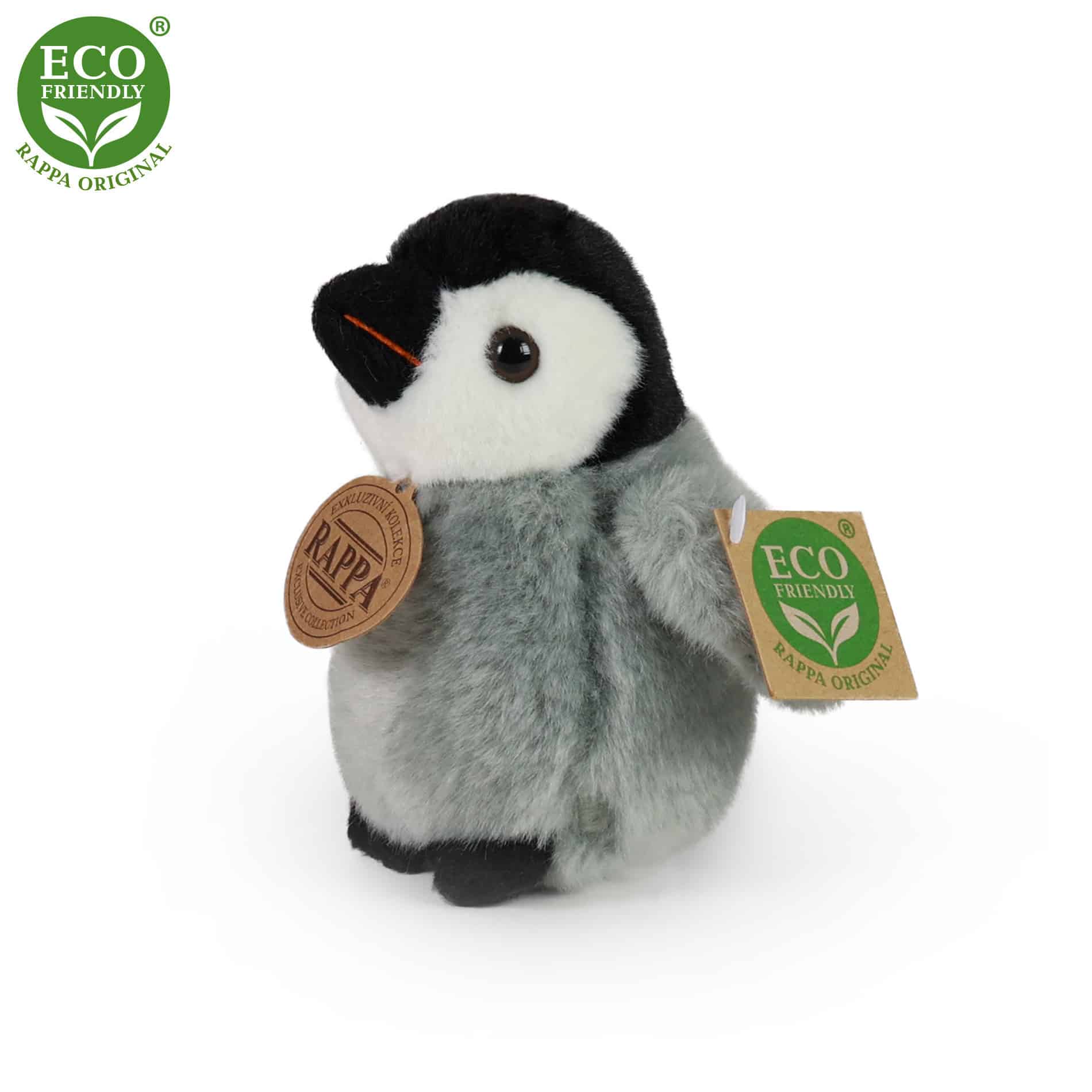 Плюшеният пингвин, с размер 12 см., е ръчно ушит от висококачествен, мек плюш, което го прави да изглежда реалистично. Не само заради своята симпатичност, той става желан спътник във всяка детска стая. Част е от ексклузивната колекция плюшени играчки RAPPA. Какво всъщност означава ЕКОЛОГИЧЕН? Пълнежът на плюшената играчка е от рециклирани PET бутилки. Този материал е напълно безопасен, неразличим на допир от стандартния пълнеж и напълно сертифициран за безопасност и на най-малките.