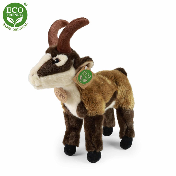 Симпатична плюшена дива коза с размер 24 см. Дивата коза е изработена от висококачествен плюш и затова е част от ексклузивната колекция плюшени играчки RAPPA. Какво всъщност означава ЕКОЛОГИЧЕН? Пълнежът на плюшената играчка е от рециклирани PET бутилки. Този материал е напълно безопасен, неразличим на допир от стандартния пълнеж и напълно сертифициран за безопасност и на най-малките. Решихме да тръгнем по зеления път с най-малко натоварване на околната среда – ЕКОЛОГИЧНИЯ път.