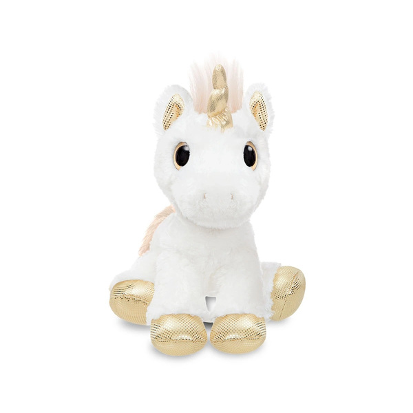 Плюшена играчка Аврора - Бял еднорог със златен рог и грива, 25 см