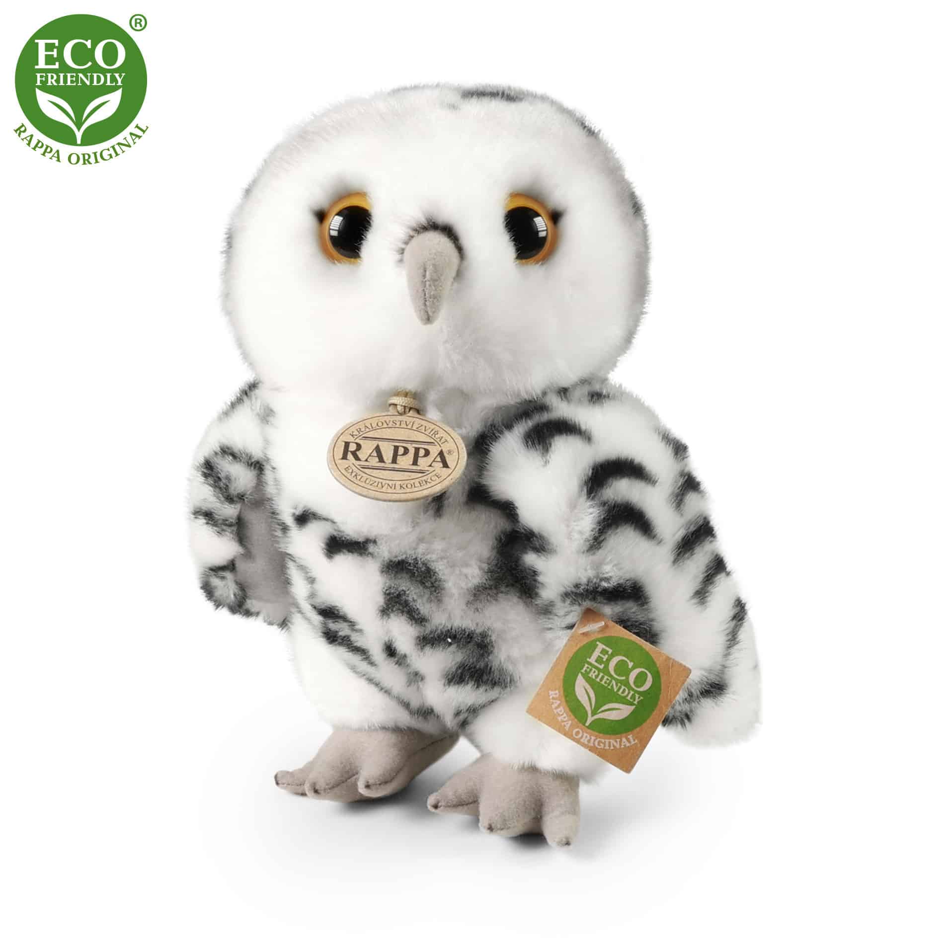 Очарователен плюшен бухал в бял и черен цвят не може да липсва в нито една детска стая! 25 сантиметровият бухал е изработен от висококачествен плюш и е част от ексклузивната колекция плюшени играчки RAPPA. Какво всъщност означава ЕКОЛОГИЧЕН? Пълнежът за плюшена играчка е изработен от рециклирани PET бутилки. Този материал е напълно безопасен, неразличим от стандартния пълнеж и напълно сертифициран за безопасност на най-малките. Възраст: 0+