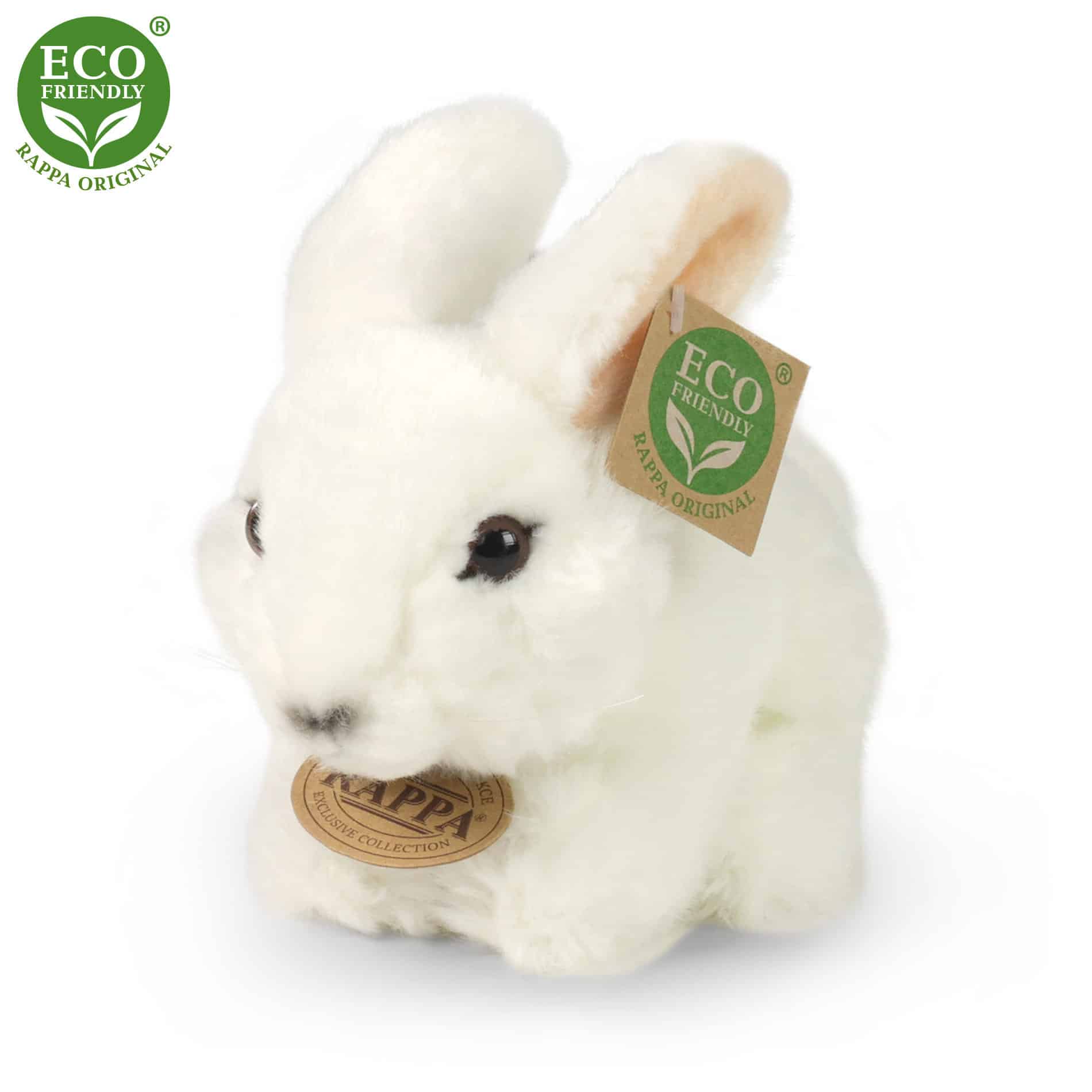 Очарователният 16 см дълъг плюшен заек е изработен от висококачествен плюш и затова е част от ексклузивната колекция плюшени играчки RAPPA. Какво всъщност означава ЕКОЛОГИЧЕН? Пълнежът на плюшената играчка е от рециклирани PET бутилки. Този материал е напълно безопасен, неразличим на допир от стандартния пълнеж и напълно сертифициран за безопасност и на най-малките. Решихме да тръгнем по зеления път с най-малко натоварване на околната среда – ЕКОЛОГИЧНИЯ път.