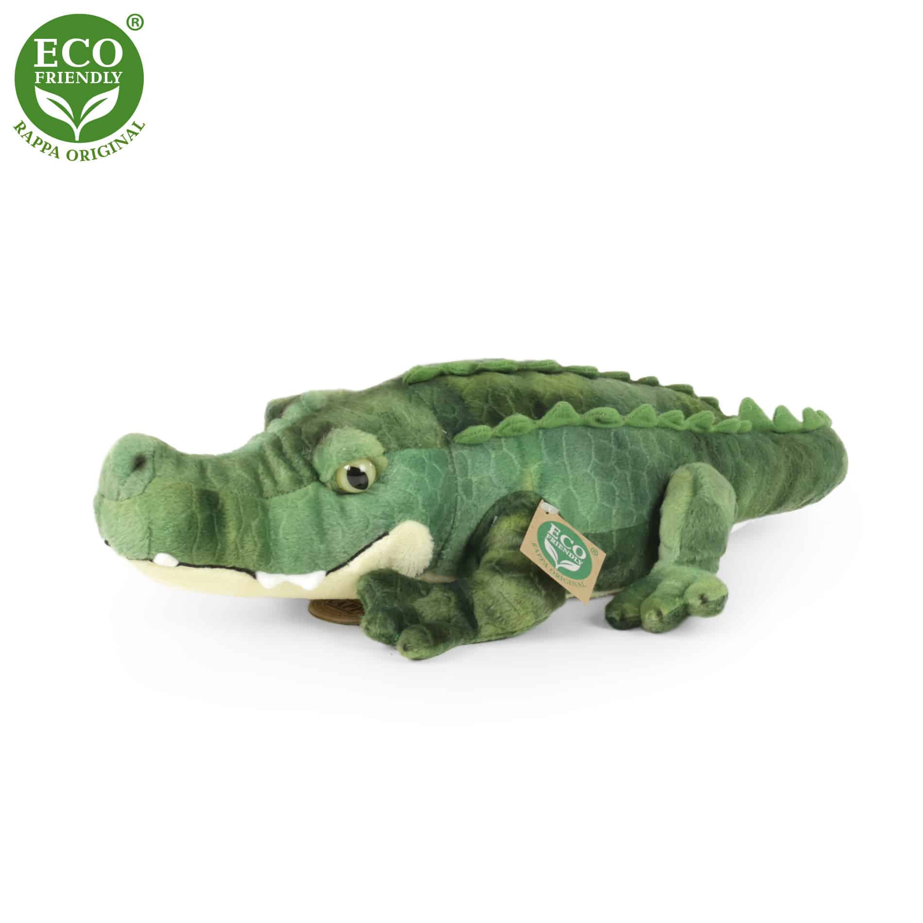Красив плюшен крокодил с дължина 45см. Крокодилът е изработен от висококачествен плюш и затова е част от ексклузивната колекция плюшени играчки RAPPA. Какво всъщност означава ЕКОЛОГИЧЕН? Пълнежът на плюшената играчка е от рециклирани PET бутилки. Този материал е напълно безопасен, неразличим на допир от стандартния пълнеж и напълно сертифициран за безопасност и на най-малките.