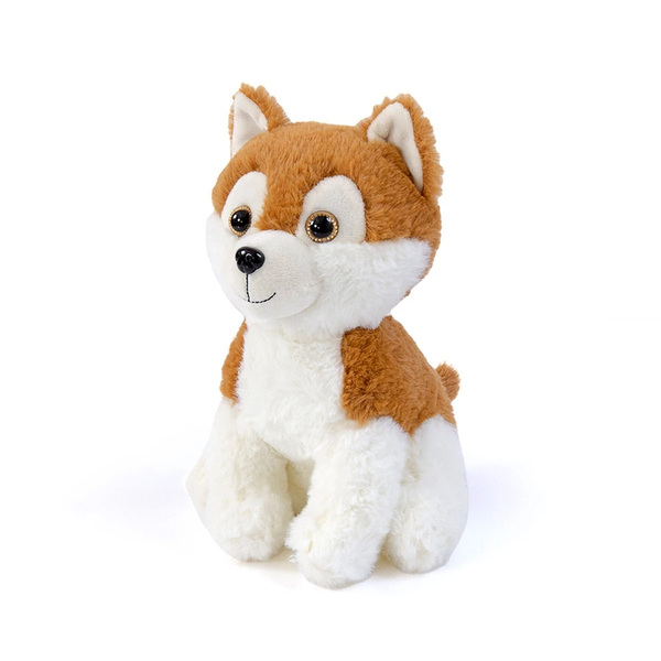 Плюшена играчка - Кученце 24 см, бяло с кафяво и изправени уши
