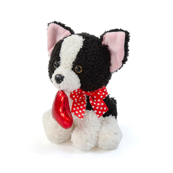 Плюшена играчка - Кученце със сърце 17 см, бяло/черно