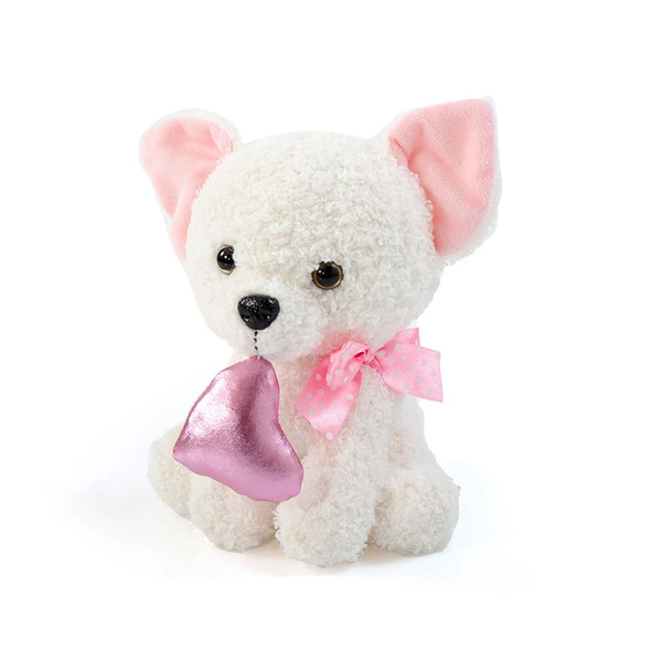Плюшена играчка - Кученце със сърце 17 см, бяло