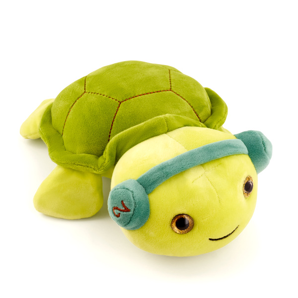Плюшената костенурка със слушалки от Tea Toys е много мека и нежна на допир.