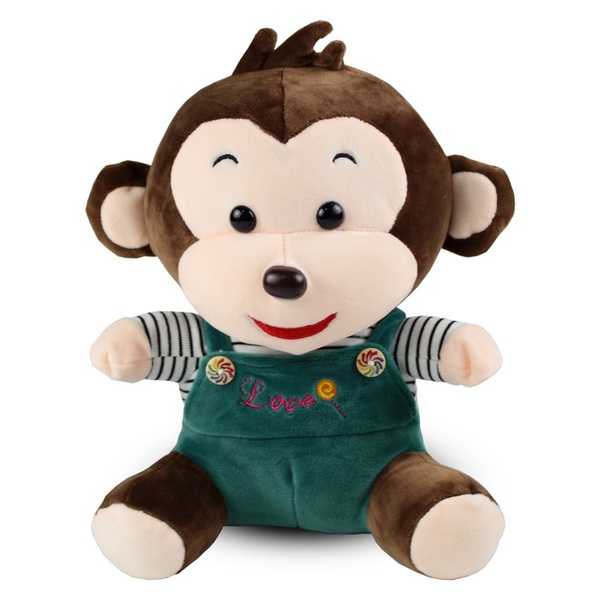 Плюшена маймунка Симо от Tea Toys е облечена с красив зелен гащеризон.