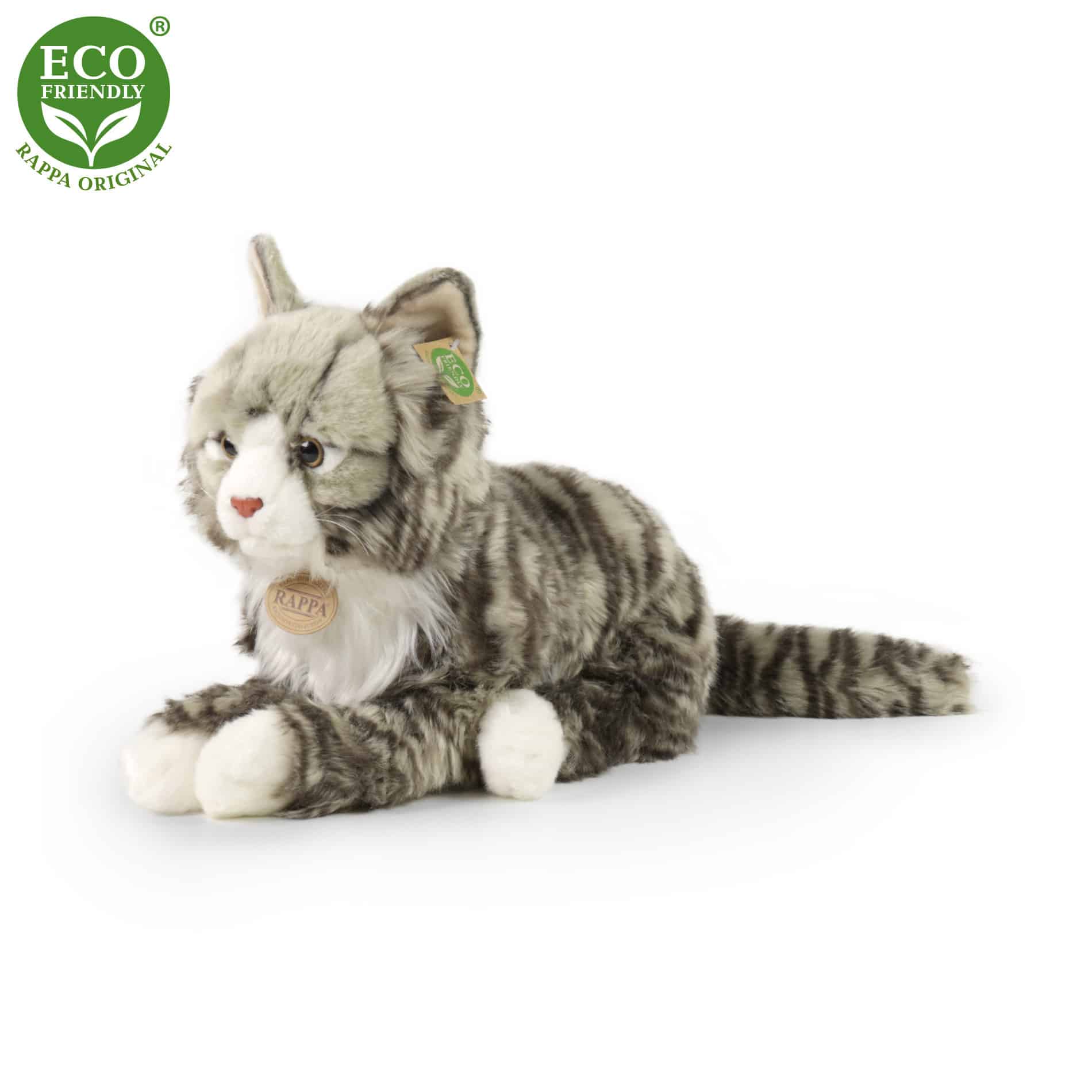 Прекрасна плюшена котка с размер 38см. Котката е изработена от висококачествен плюш и затова е част от ексклузивната колекция плюшени играчки RAPPA. Какво всъщност означава ЕКОЛОГИЧЕН? Пълнежът на плюшената играчка е от рециклирани PET бутилки. Този материал е напълно безопасен, неразличим на допир от стандартния пълнеж и напълно сертифициран за безопасност и на най-малките.