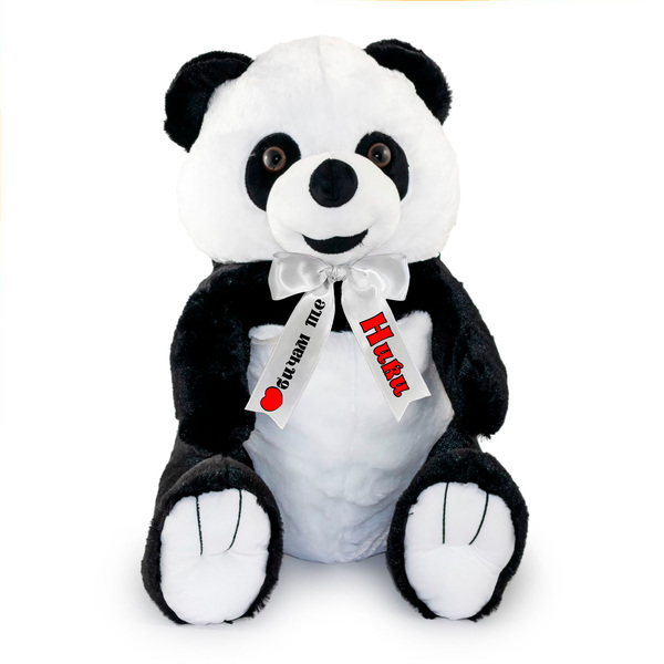 Плюшена играчка панда с надписана панделка е изработено от висококачествена материя.Вие избирате, какво да изпишем на панделнака, ние го изработваме за един ден!Още с първата среща вие ще се влюбите в нея!Подходяща за мачкане и гушкане и за най-малките палавници!Размер: 50 см.Състав: текстил, пълнеж и багрила безвредни за здравето, 100% полиестер.Отговаря на европейския стандарт за качество EN71.