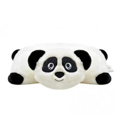 Сгънете възглавничката, закопчайте копчетата и получавате симпатична плюшена панда за гушкане.
