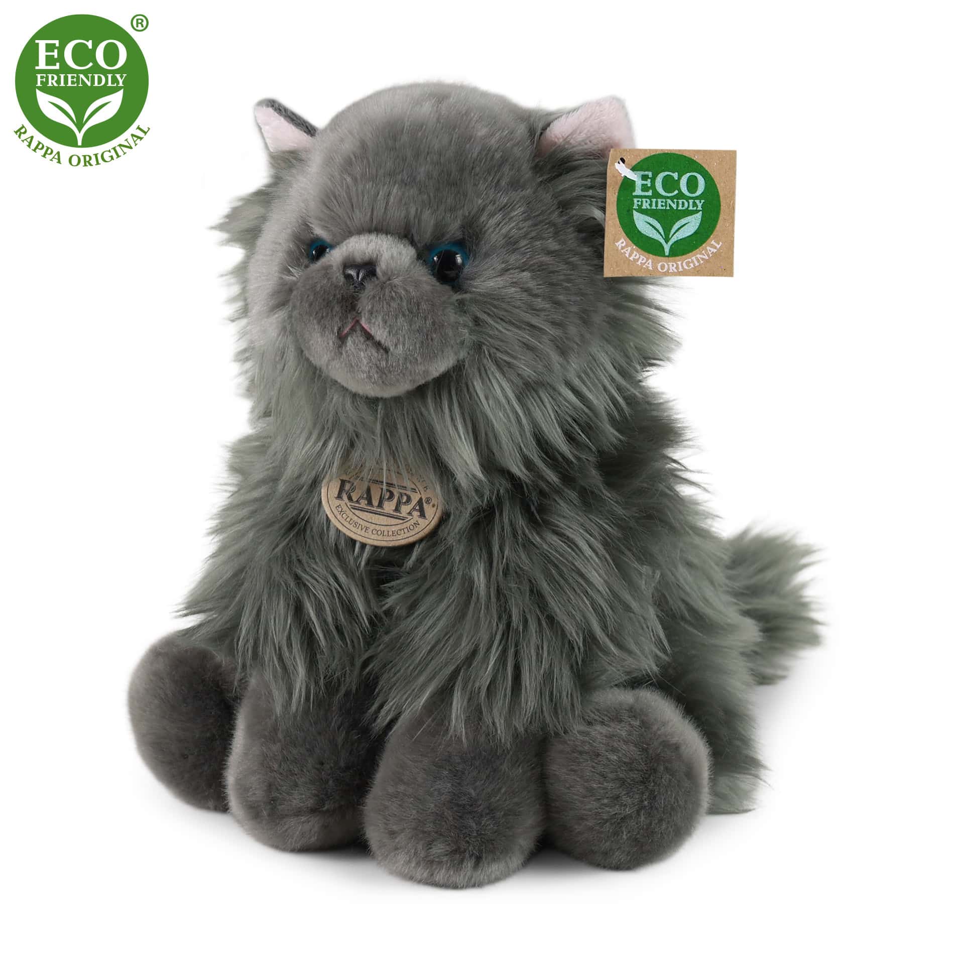 Прекрасна плюшена котка с размер 30см. Котката е изработена от висококачествен плюш и затова е част от ексклузивната колекция плюшени играчки RAPPA. Какво всъщност означава ЕКОЛОГИЧЕН? Пълнежът на плюшената играчка е от рециклирани PET бутилки. Този материал е напълно безопасен, неразличим на допир от стандартния пълнеж и напълно сертифициран за безопасност и на най-малките. Решихме да тръгнем по зеления път с най-малко натоварване на околната среда – ЕКОЛОГИЧНИЯ път. Възраст: 0+ Размери: 20х25х30 см.