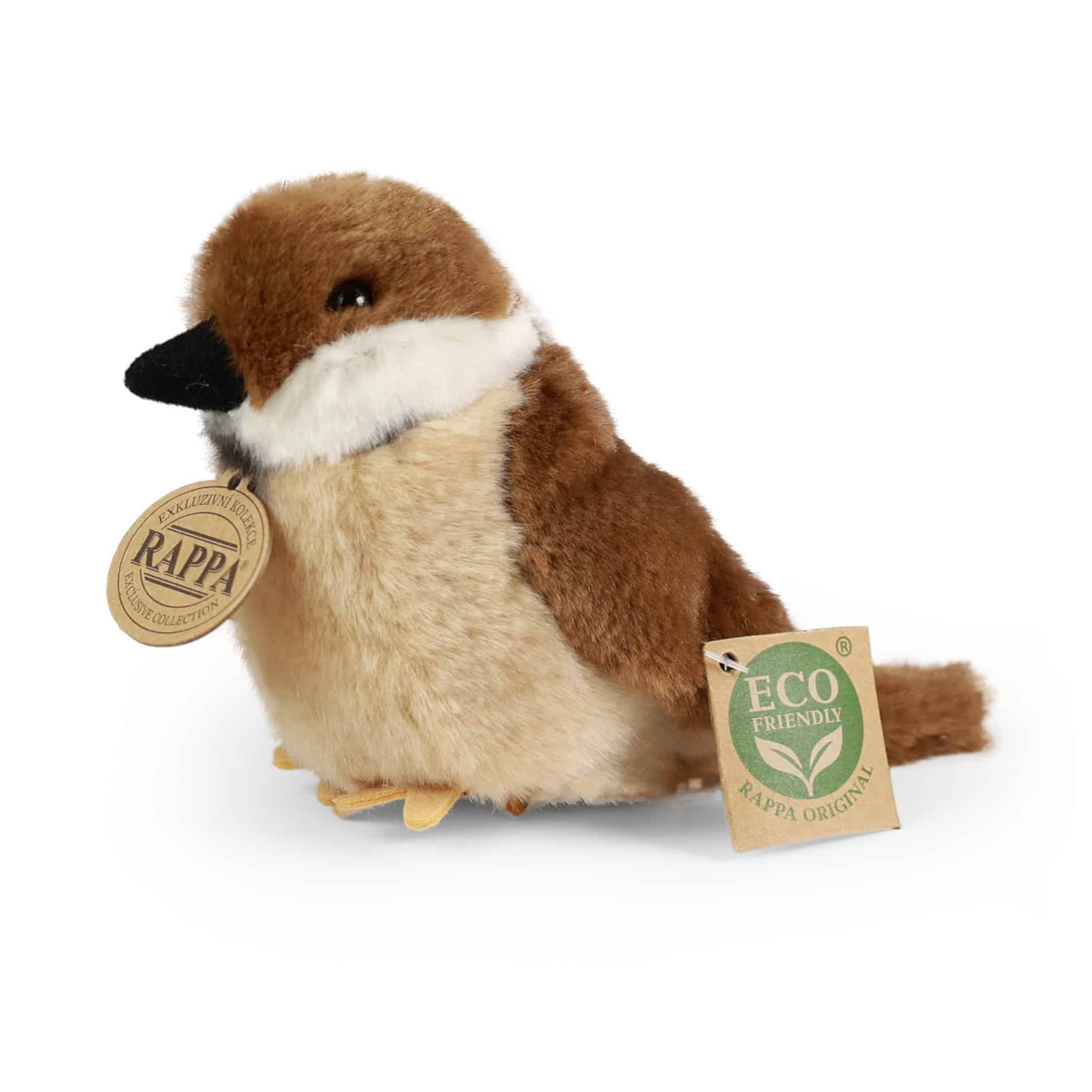 Плюшеното врабче с размер 13 см е изработено от ексклузивен, висококачествен плюш. Това плюшено птиче е част от ексклузивната колекция плюшени играчки RAPPA. Какво всъщност означава ЕКОЛОГИЧЕН? Пълнежът за плюшена играчка е изработен от рециклирани PET бутилки. Този материал е напълно безопасен, неразличим от стандартния пълнеж и напълно сертифициран за безопасност на най-малките. Решихме да следваме зелената пътека, колкото е възможно по-щадяща околната среда – ЕКО-ПЪТЯТА.