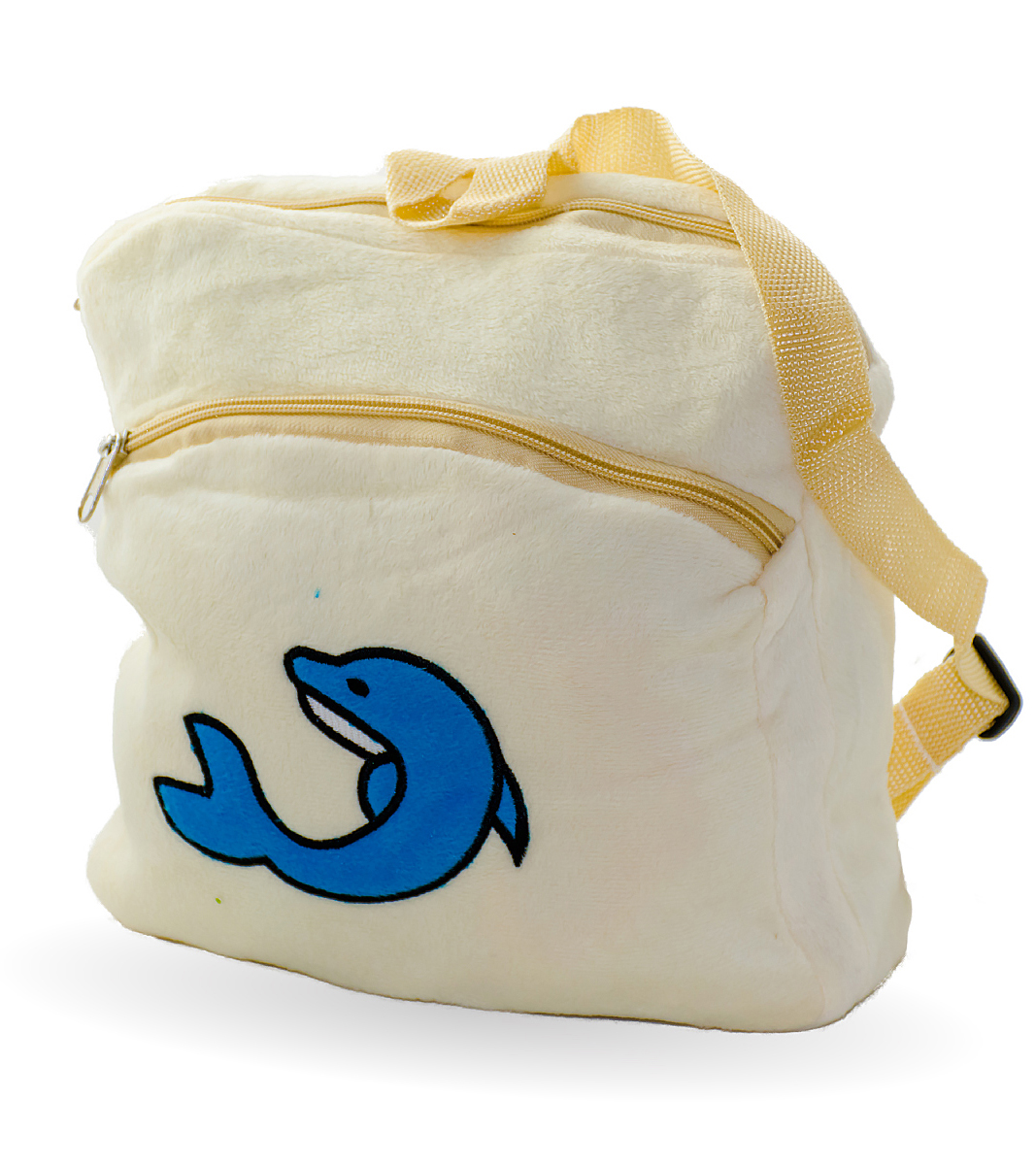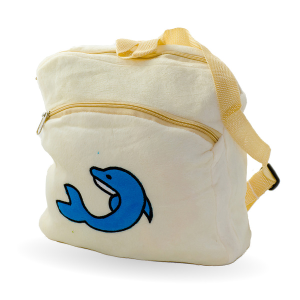 Плюшена раничка с делфин в бежаво ще зарадва всеки малчуган.