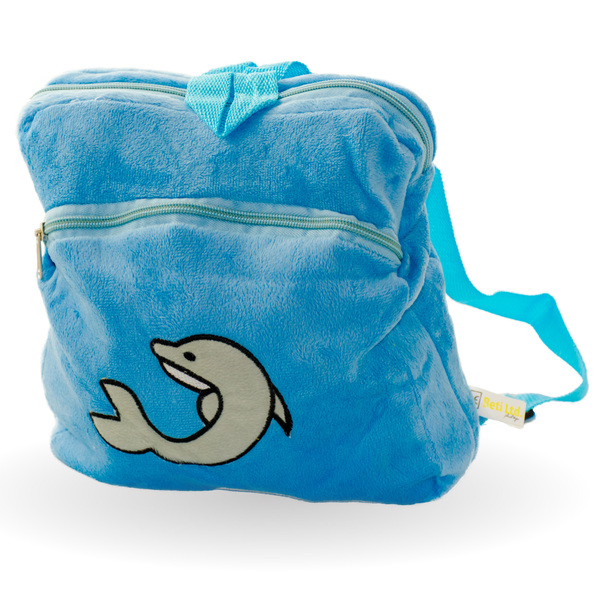 Плюшена раничка с делфин в синьо ще зарадва всеки малчуган.