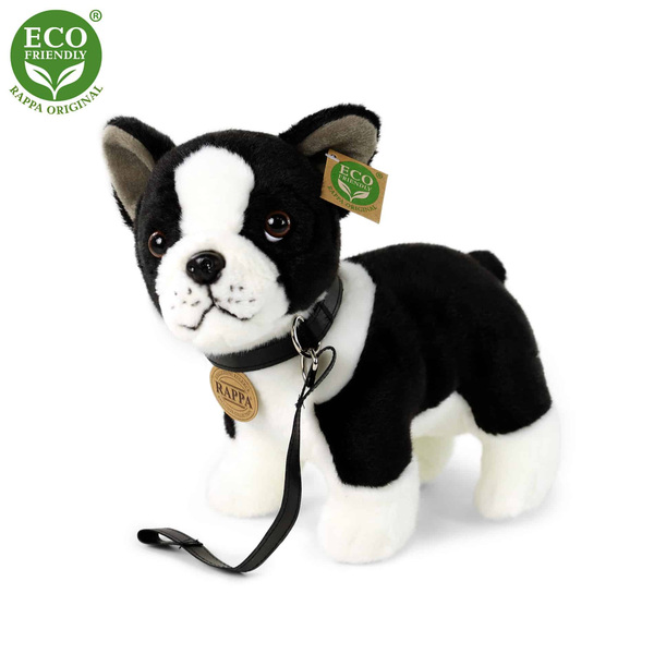 Бостънският териер е порода кучета, произхождаща от САЩ, по-специално от Бостън, отглеждана за боеве с кучета. Тази 23 см плюшена играчка е изработена от изключителен, висококачествен плюш и включва кожена каишка. Този сензационен плюш е идеален и за подарък! Плюшеното куче е част от ексклузивната колекция плюшени играчки RAPPA. Какво всъщност означава ЕКОЛОГИЧЕН? Пълнежът на плюшената играчка е от рециклирани PET бутилки. Този материал е напълно безопасен, неразличим на допир от стандартния пълнеж и напълно сертифициран за безопасност и на най-малките.